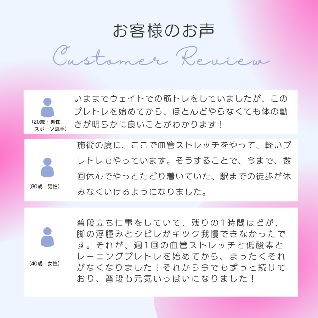 血管ストレッチマシンのトライブが提供する「血管ストレッチ(IC)」と「プレトレ(低酸素トレーニング)」の効果は世界中で研究され、高い安全性と明確なエビデンスが報告されています。