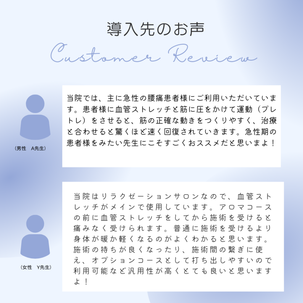 - 自費の手技にプラスして売り上げを作れる機器を検討している